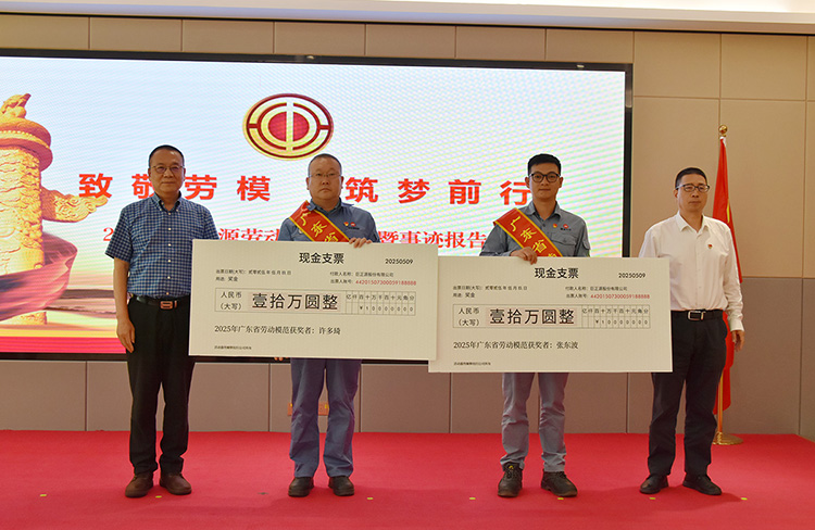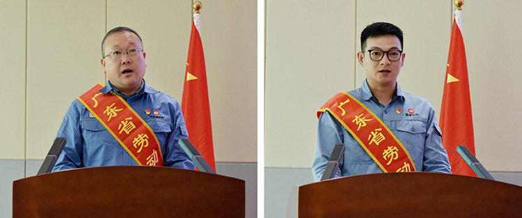 会议宣读了对荣获“广东省劳动模范”的许多琦、张东波同志的表彰决定,对他们辛勤付出和工作成效予以肯定。公司领导为许多琦、张东波同志颁发奖金,并为许多琦、张东波“劳模和工匠人才创新工作室”揭牌。