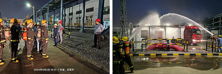 东莞巨正源科技公司于5月2日19时10分,在一期PDH110单元23米层模拟物料泄漏,针对复杂高空作业环境,演练引入智能监测设备实时传输数据,实现应急处置的智能化升级。5月4日开展PP装置和PDH装置物料泄漏应急处置演练,检验多部门协同作战能力,并针对高温高压设备泄漏风险开展专项处置。通过演练复盘总结,不断优化应急预案,完善风险防控机制,以“演练常态化”推动“安全意识扎根化”。