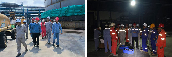 五一假期期间,揭阳巨正源科技公司领导带领值班团队深入一线,慰问节日期间加班奋战的员工,走访了门卫岗亭值守人员、110kV变电站值班人员、醋酸及原料罐区施工团队及监理人员,为他们送去牛奶、面包等慰问品,并致以节日的问候与诚挚的感谢。公司领导鼓励员工们继续发扬拼搏精神,坚持安全第一、质量至上、高效收尾,为项目高标准投产保驾护航。领导的关怀和鼓励,让一线员工倍感温暖和振奋,大家纷纷表示将站好每一班岗,全力以赴完成项目建设任务。
